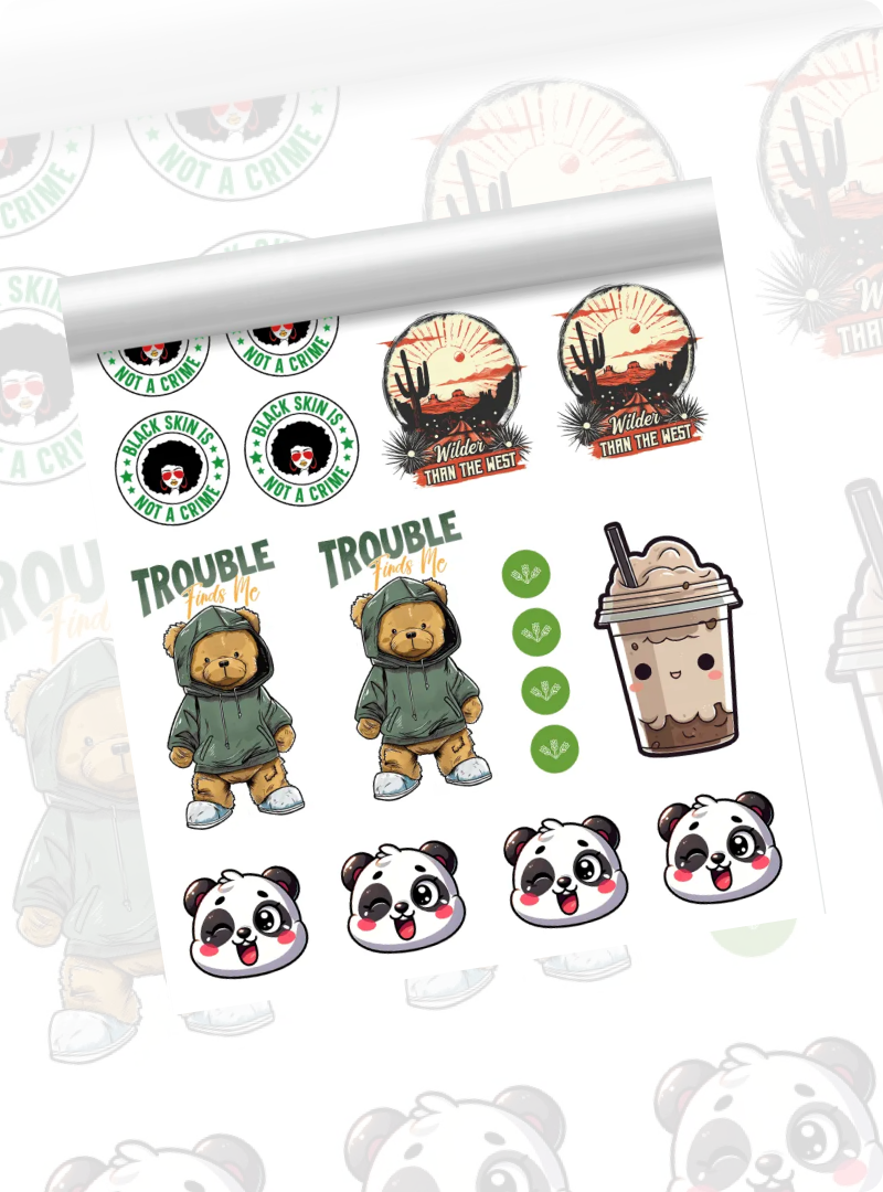 Print any design & transfer our UV 3D DTF Stickers onto any hard surface with incredible durability. Upload your print-ready Gang Sheet or use our Gang Sheet Builder and let us take care of the rest.